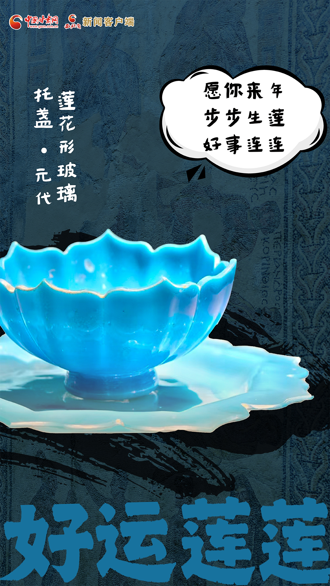 简介:国宝级文物,是迄今出土最完整的一套元代玻璃托盏。造型为七瓣莲花盏与八瓣莲花托,工艺精湛,反映了元代中西技艺的融合与丝路文明交融的成果。