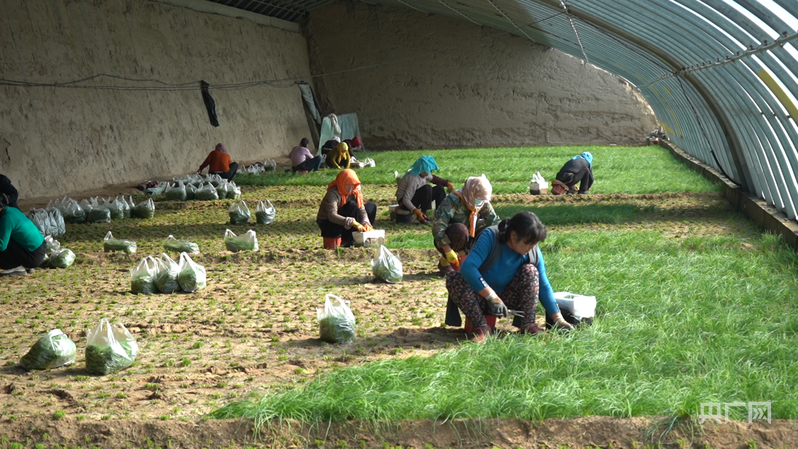 沙葱大棚里村民们正在劳作(央广网发 民勤县融媒体中心供图)