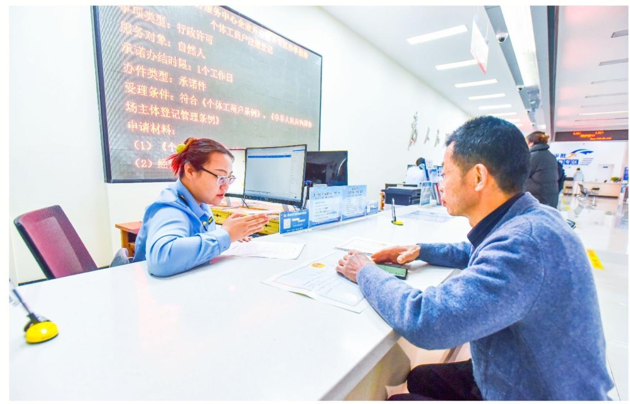 这是嘉酒跨市通办专窗,工作人员正在为商户办理企业开办证照。融媒体中心记者 武晓霞 摄
