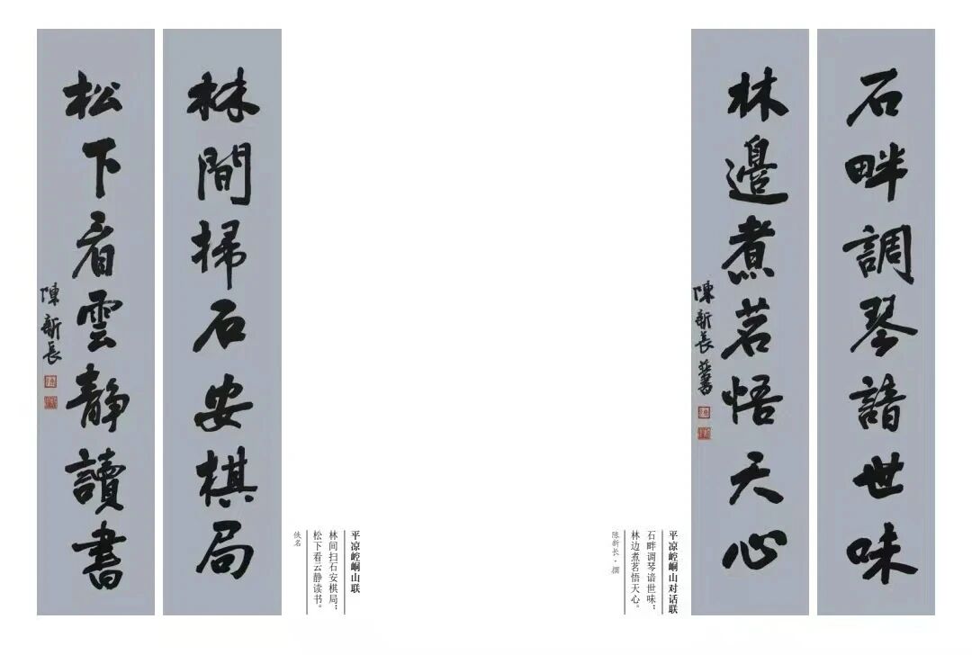 作者将其称之为“对话联”,他说,在创作这218副“对话联”时,“每一字的斟酌、每一句的推敲,都是一场跨越时空的精神对谈……让古今意境在回环呼应中延展……让历史的厚重与当代的思考交织。”在一次次的对话中,作者品读原联,探寻其蕴含的历史脉搏和精神密码,感悟其承载的丰厚情感与深邃哲思,他又将自撰的新联,看做是“当代的精神回响”,以时代的笔墨,全新的解读,要为其融入当下对文化、对自然、对人生的感悟,“在平仄对仗的规范中求变,在意境叙事的呼应中创新,使每一副‘对话联’既守传统之正,又含时代之新,成为连接过去与现在的文化纽带,让甘肃名胜的文化脉络在古今对话中得以疏浚、延展,让楹联这一古老艺术形式,在当代语境中获得新的表达维度……”