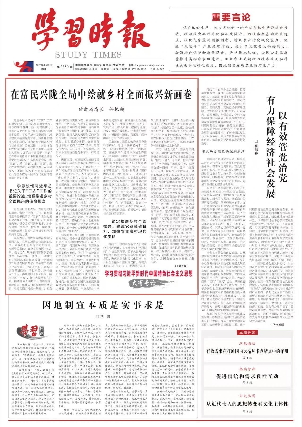 甘肃省省长任振鹤在《学习时报》发表署名文章:在富民兴陇全局中绘就乡村全面振兴新画卷