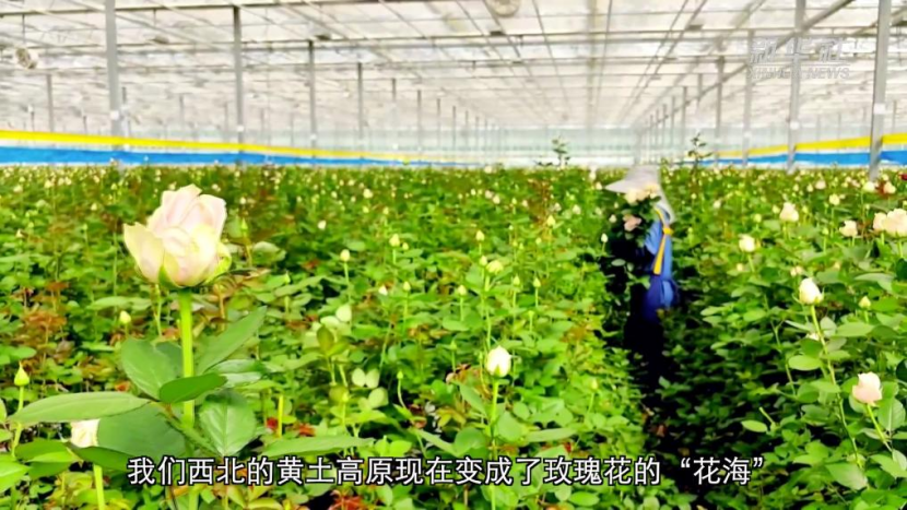 冬日,在甘肃省临夏回族自治州临夏市的百益亿农国际鲜花港的智能温室内,玫瑰绽放,花香四溢。