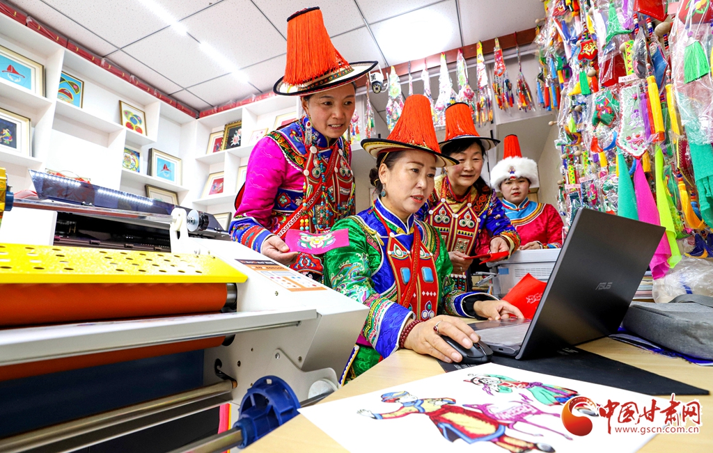 1月18日,祁连山下寒风凛冽,张掖市肃南裕固族自治县的非遗传承技艺大师工作室内却气氛热烈。非遗传承技师潘小红和杨海燕正带领民族服饰爱好者,学习数字全自动刺绣、数字印花、全自动烫金、数字智能缝纫、数字包边、裁切及AI智能图案设计等民族服装智能化制作技艺。