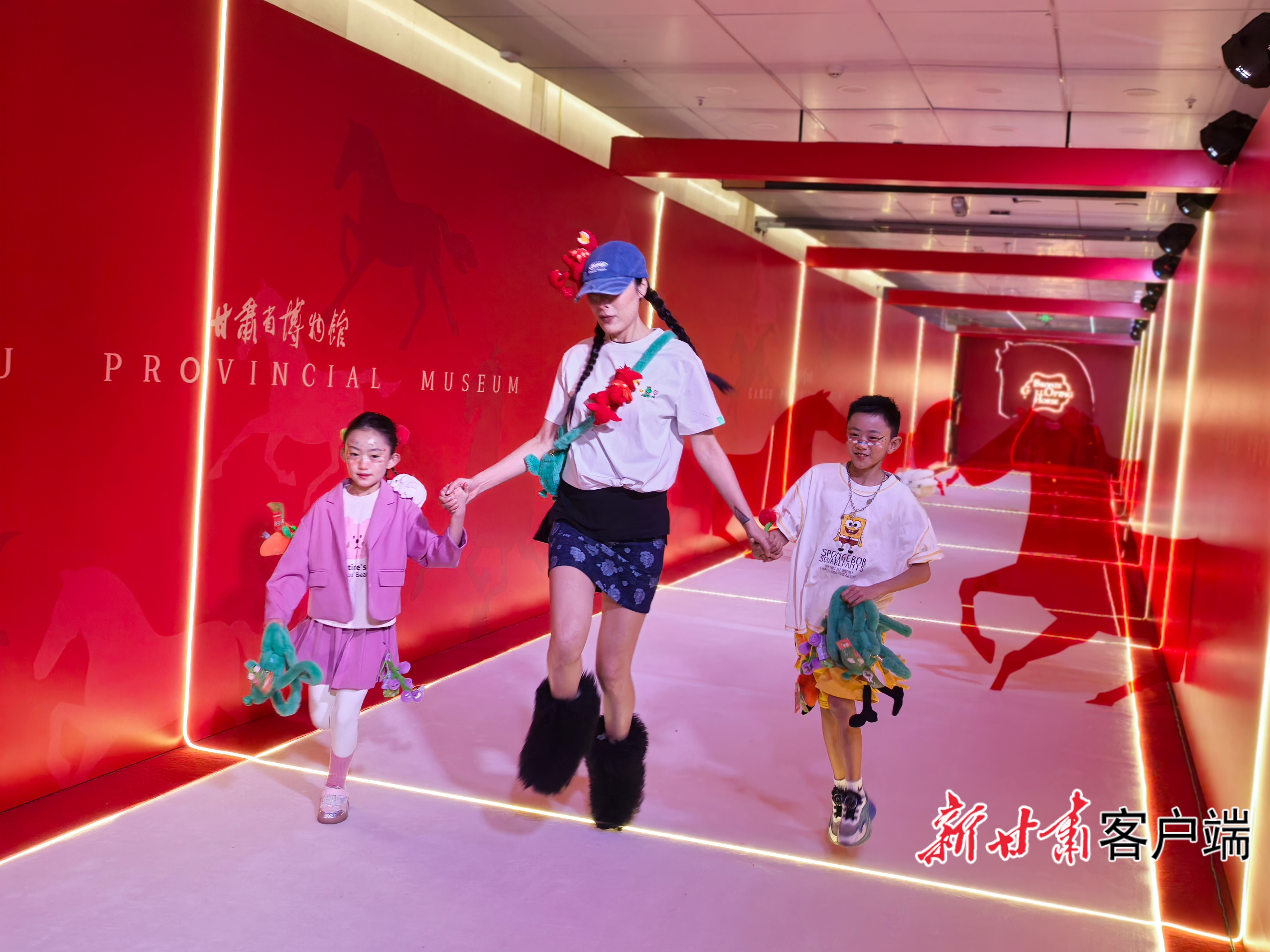 晚会重头戏“马力全开”主题走秀,以“马到成功”“万马奔腾”“马力全开”三个篇章将现场气氛推向高潮。博物馆职工与专业模特、绿马人偶等同台演绎,光影流转间,千年丝路文明的厚重底蕴借时尚之形绽放别样华彩。