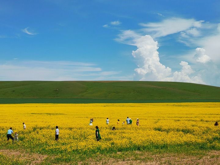 当游客举着相机在我的花海中穿梭时,那些驰骋沙场的将军、孤身上路的僧人、往来不绝的商旅……他们的身影仿佛也重现在这片金色的波浪里,随着花开花落,融进了这片土地的生生不息里。
