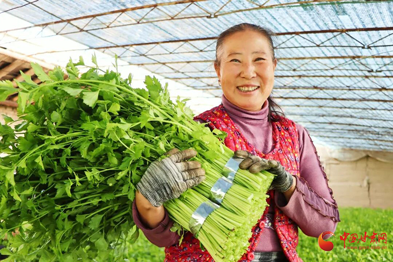 寒冬时节,临泽县鸭暖镇古寨村的设施农业大棚里一派绿意融融、生机盎然的景象。温暖如春的棚室内,湿润空气中弥漫着泥土与蔬菜的清香,鲜嫩翠绿的香芹长势喜人,棚内一株株“小蔬菜”成为支撑群众增收致富、推动乡村全面振兴的“大产业”。