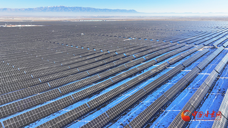 近日,甘肃省张掖市民乐工业园区的三墩滩10万千瓦光伏电站内,一排排光伏太阳能发电板整齐排列在茫茫戈壁滩上,如同一片蓝色的海洋,源源不断输送绿色能源。
