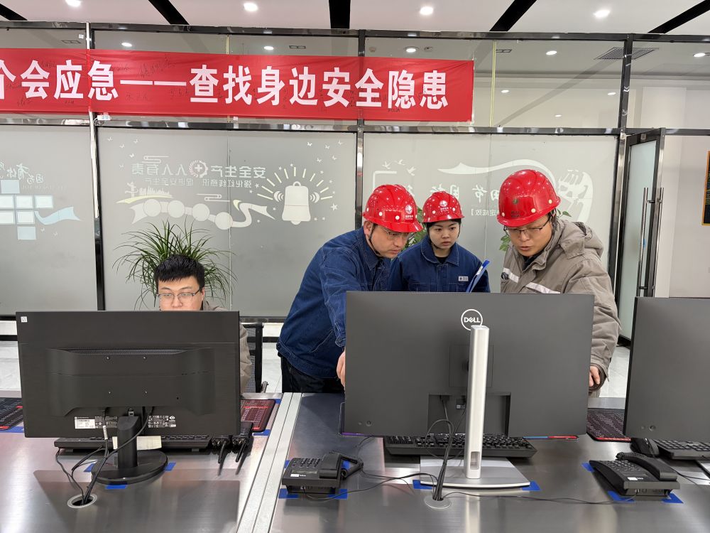 甘肃中瑞铝业有限公司动力车间职工刘良民(左)与国网白银供电公司的职工共同巡检企业的动力车间。 新华社记者 程楠 摄