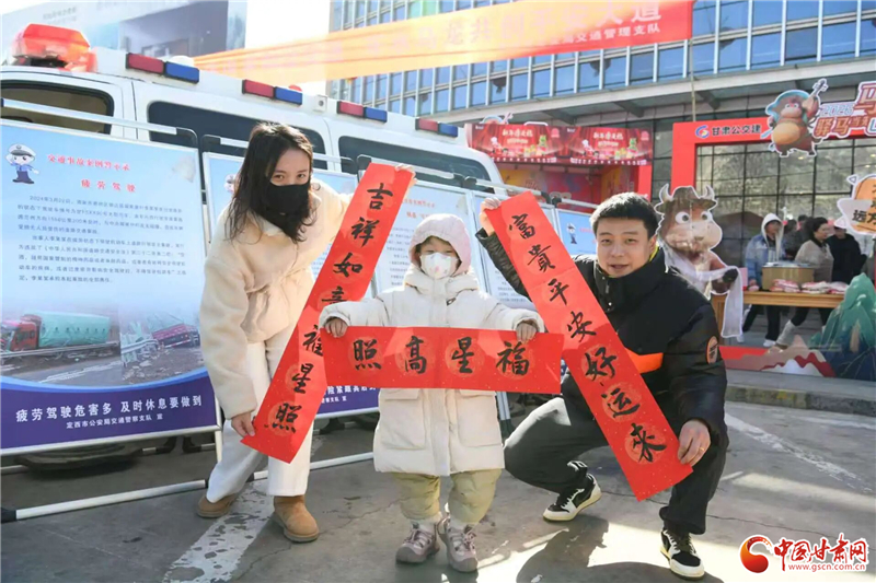 现场最引人注目的当属“平安年货铺”,司乘人员参与交通安全知识问答或现场作出安全承诺,即可获得春联、福字及定制交通安全宣传品,通过寓教于乐的互动,有效传递安全出行理念。