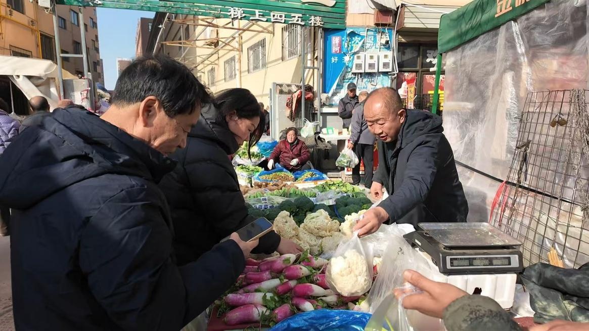 蔬菜区更是挤得转不开身。芹菜扎成捆,韭菜带着泥,蒜苗的香扑鼻。顾客们蹲在摊位前,一根根挑着豆角,掰着藕节。称完重,交完钱,蔬菜一把一把往布兜里一塞,转身又挤进下一个摊位。