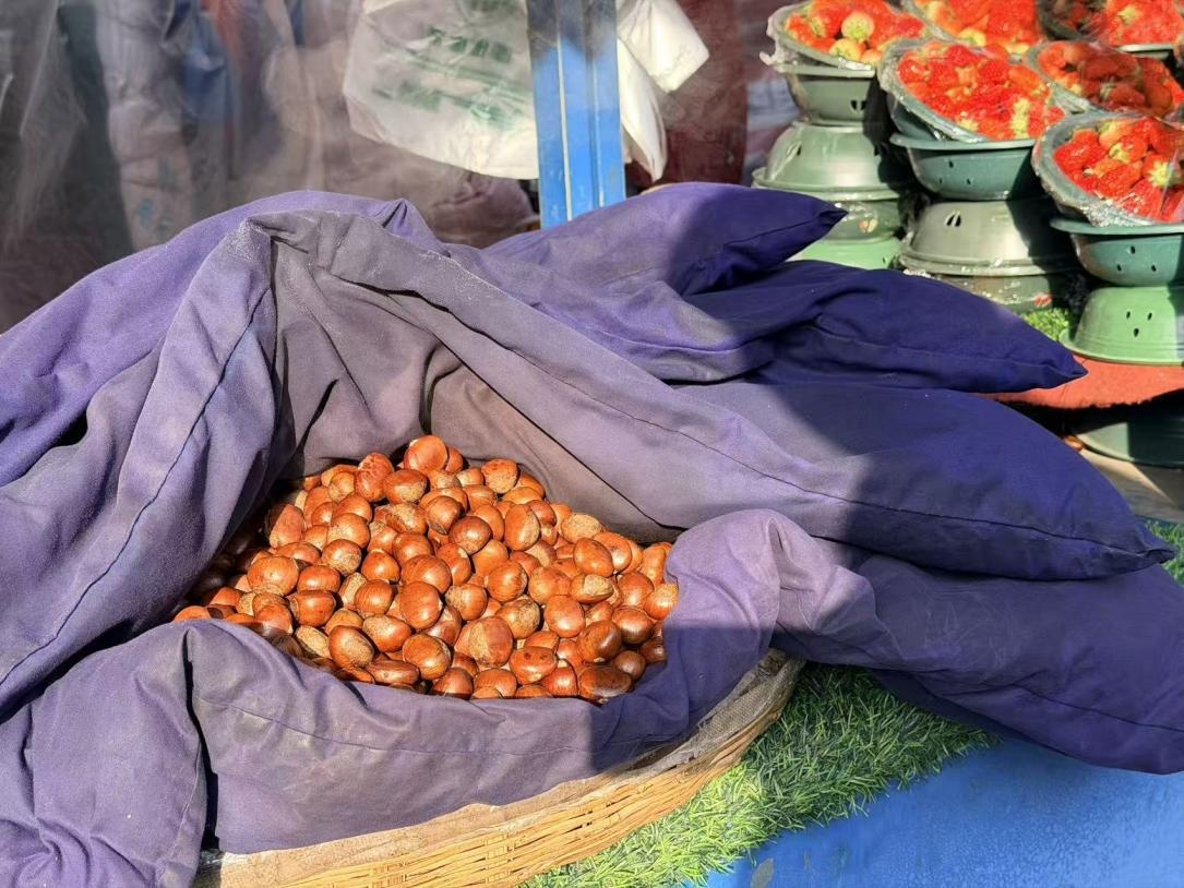 日头渐高,坚家河的人流更密了。张先生的购物袋已经塞得满满当当:甜醅、冻豆腐,两袋天水松子,两盒鲜红的大草莓,还有一把芹菜,三斤花生米,八斤猪肉,满满当当三大兜。“我想吃妈妈做的饭,喜欢吃妈妈做的饺子,妈妈做的红烧肉,从小吃到大,那是家的味道”,四十不惑的年纪,过年最盼的,还是妈妈包的饺子,和炖得烂乎的那碗红烧肉。