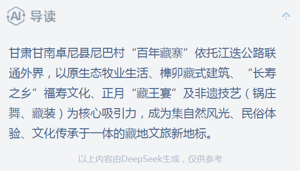 中新网兰州2月16日电 (记者 冯志军)在被称为“中国最美百公里”江迭公路的核心段,依山而建的一处“百年藏寨”藏于青山绿水间。随着近年与外界交通网络的不断完善,百年藏寨的古韵、百岁老人的福寿、百里公路的风光、特色宴席的美味等逐一“走出”藏寨,成为藏地文旅打卡的“引流新地”。
