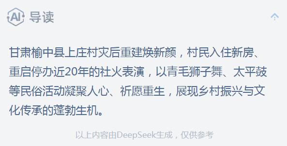 中新网兰州2月16日电 (闫姣 王牧雨)锣鼓声和鞭炮声响起,西北大山里的年就到了。在甘肃兰州市榆中县马坡乡上庄村,到处都是灾后重生、向阳向暖的新气象。