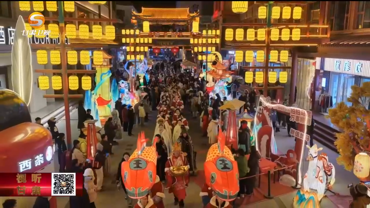 夜幕降临,白银市金岭公园里灯火璀璨、游人如织。花灯如繁星般点缀在公园的各个角落,与美食的香气交织在一起,璀璨夜景与市井烟火在此完美交融。在敦煌沙州夜市,身着传统汉服的高校学子,穿梭在人群中,为新春佳节增添浓厚的文化氛围。