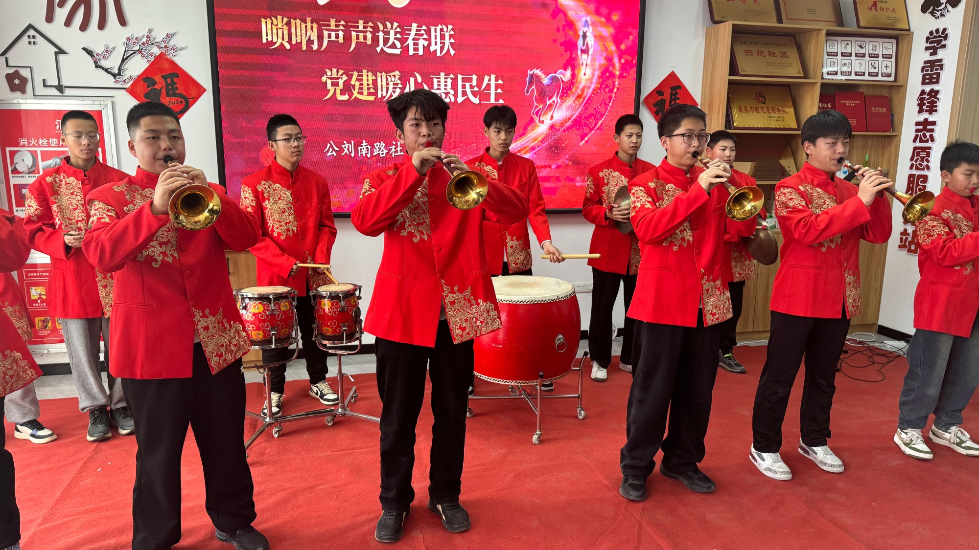 活动现场,风雅堂唢呐艺术传习所的青年演奏者带来《金蛇狂舞》《百鸟朝凤》等经典曲目,高亢嘹亮的乐声点燃了全场气氛。随后,合唱、民族舞等节目接连上演,书法爱好者挥毫泼墨,将一副副寓意吉祥的手写春联赠予居民。“在社区过年很热闹,特别是唢呐声很有感染力,我还领到了手写春联,把过年的氛围拉满了。”居民董世博高兴地说。