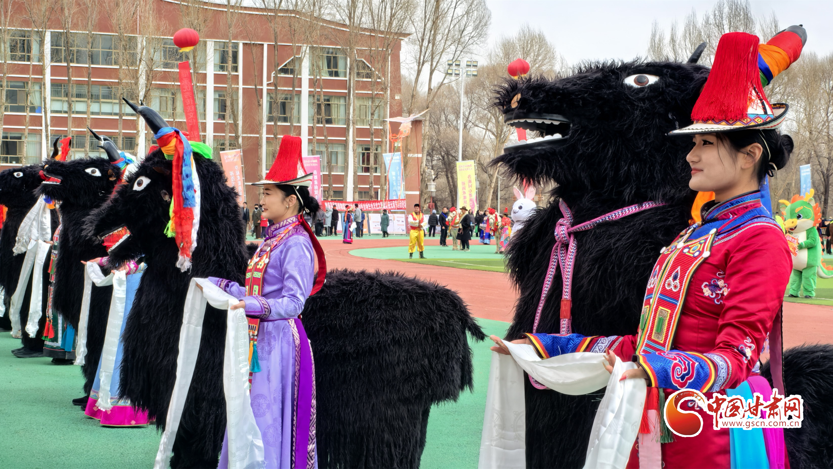 现场锣鼓喧天、歌舞飞扬,处处洋溢着欢乐祥和、喜庆热烈的浓厚年味。上午11时,社火方队在县城盛装巡游。由18匹骏马、8匹骆驼组成的特色方阵昂首走在队伍前列。今年恰逢马年,金马奋蹄、气宇轩昂,寓意着马到成功、一马当先的美好祝愿;骆驼方队步伐稳健、神态从容,带着草原丝路的悠远风情,让人眼前一亮。这支以草原民族特有的马与骆驼元素组成的拜年队伍,向全县人民送上了别具一格的新春祝福。随后,身着裕固族、藏族、蒙古族等各民族盛装的演职人员队伍踏歌而行,服饰绚丽、舞步轻盈,一路欢声笑语,引来沿途群众纷纷驻足、连连拍照,街巷间年味十足、喜气洋洋。
