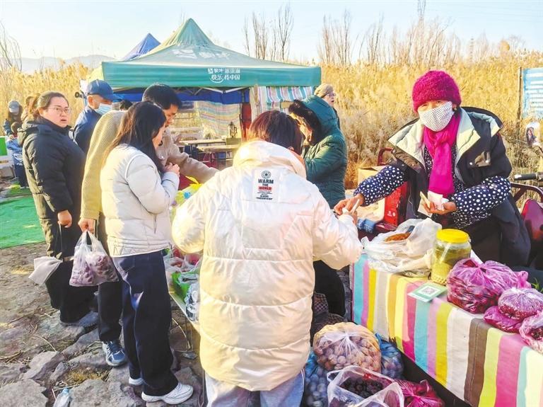 2025年,镇里借助天鹅流量,积极打造了新农人集市,建成小吃移动摊位50余个,鼓励村民售卖“达川蜂蜜”“达川酒枣”“传统锅盔”等特色农产品。
