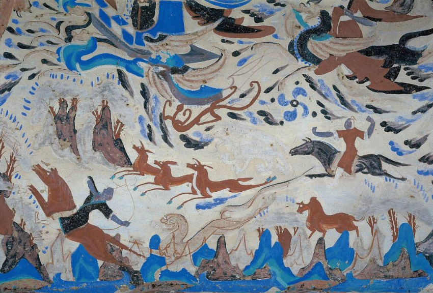 莫高窟第249窟的狩猎图。新华社发