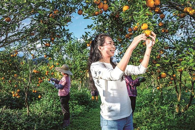 产业兴,百姓富。在陈慧的带动下,周边越来越多的村民投身贡柑产业,实现家门口就业增收。“我在果园打工,一个月能挣3000多块,还能照顾家里的老人孩子,比外出打工舒心多了。”正在打包贡柑的村民张阿姨脸上洋溢着幸福的笑容,“跟着这个姑娘干,我们不仅学会了种植技术,还能拿到分红,日子越过越有奔头!”