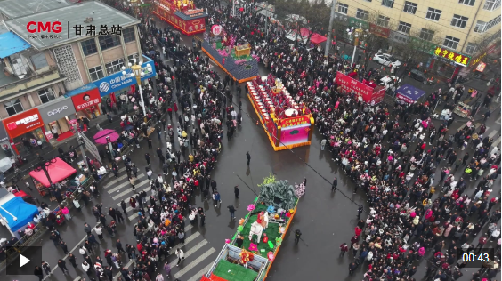 【甘快看】甘肃社火“炸街”过大年:庄浪高抬凌空起舞 陇西古郡点亮不夜天