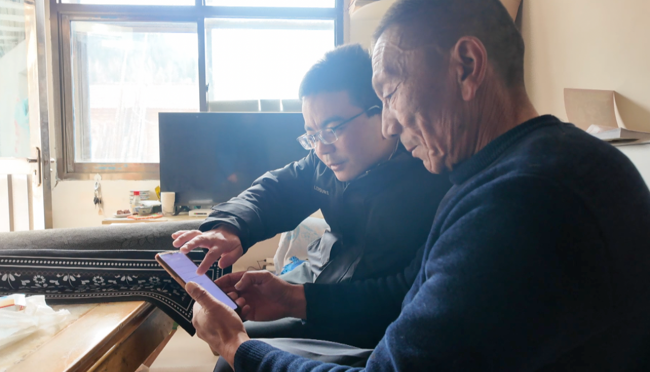 窦斌为老人检查手机