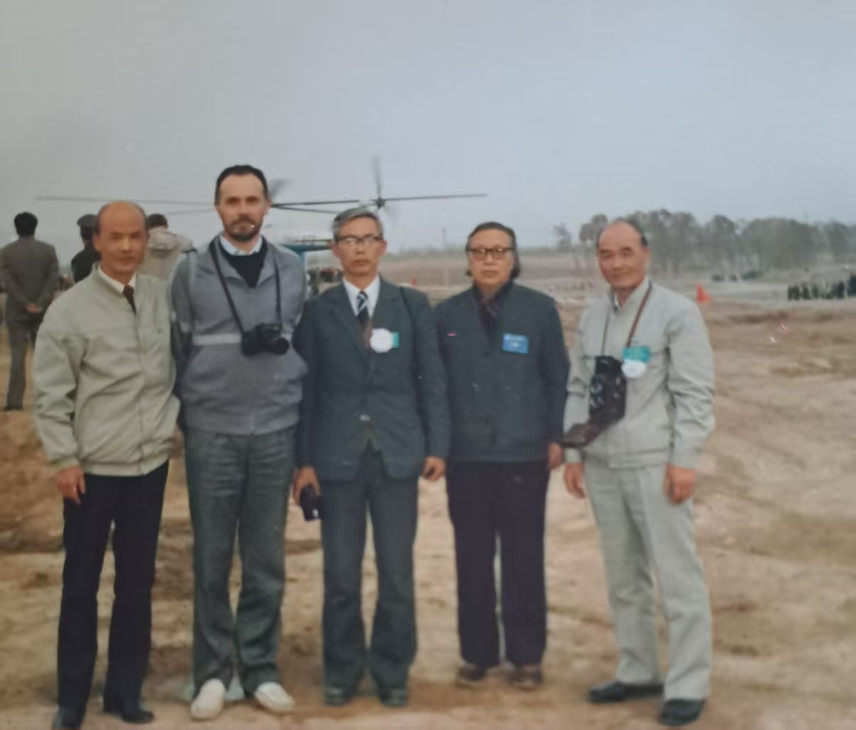 艾黎骨灰播撒现场,身后是直升飞机。从右至左:聂广淳、李屺阳、聂广涛、马克•托马斯、聂广沛。