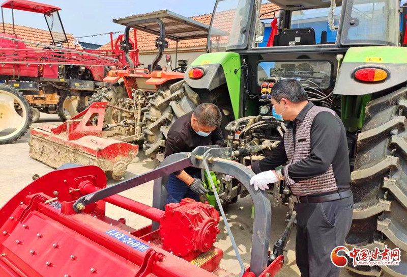 春耕备耕在即,民乐县各农机检修点积极开展农机具调试、检修。在民乐县一企业农机具检修点,技术人员为拖拉机调试、复检保养、排查隐患、粘贴反光条。负责人牛爱英表示,自去年年底起,通过上门服务等形式指导农机手保养、调试和检修农机,提高技术性能。