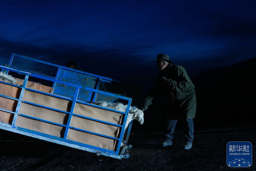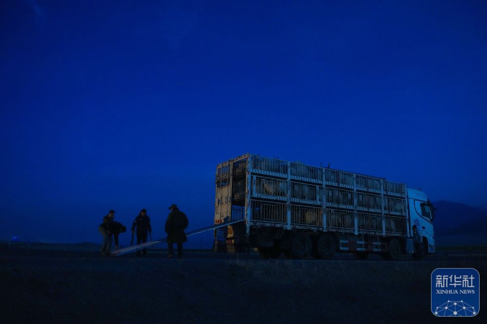 3月7日,在青海省海北藏族自治州祁连县阿柔乡草大板村,东宝准备将车辆中的羊群放归草原。新华社记者 张龙 摄