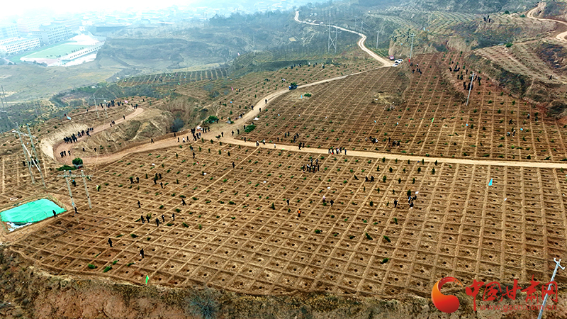 3月10日,武山县干部职工一同在城关镇清池村西坪参加义务植树