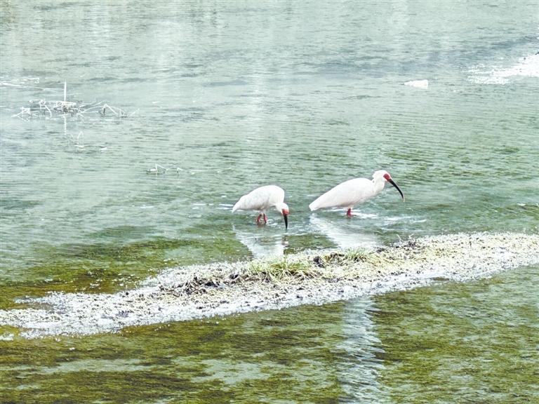 朱鹮现身康县云台河畔。新甘肃·甘肃日报通讯员 李平
