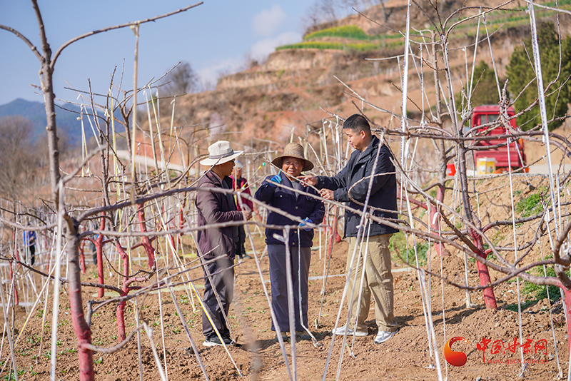 为了提升群众的科学化管护水平,村上还积极与陇南市农技总站建立技术帮扶关系,累计开展种植管护、病虫害防治培训126余人次,让农户掌握科学种植技巧。镇村干部与农技人员紧抓春管的有利时节下沉一线,现场指导农户开展施肥、病虫害防治、拉枝等精细化田间管理,用技术护航樱桃产业提质增效,让“樱桃红”成为寨子村春耕最亮眼的底色。
