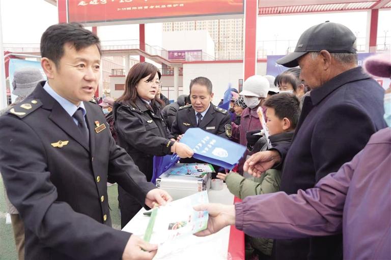 在第44届“3·15”国际消费者权益日,兰州新区商务和市场监管局、消费者协会联合新区法院、检察院、民政司法和社会保障局等多家单位及企业,在中川体育公园开展2026年“3·15”国际消费者权益日现场宣传咨询服务活动。