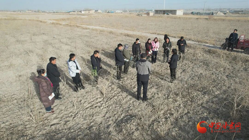 农户正在枸杞田里学习枸杞果树修剪相关知识