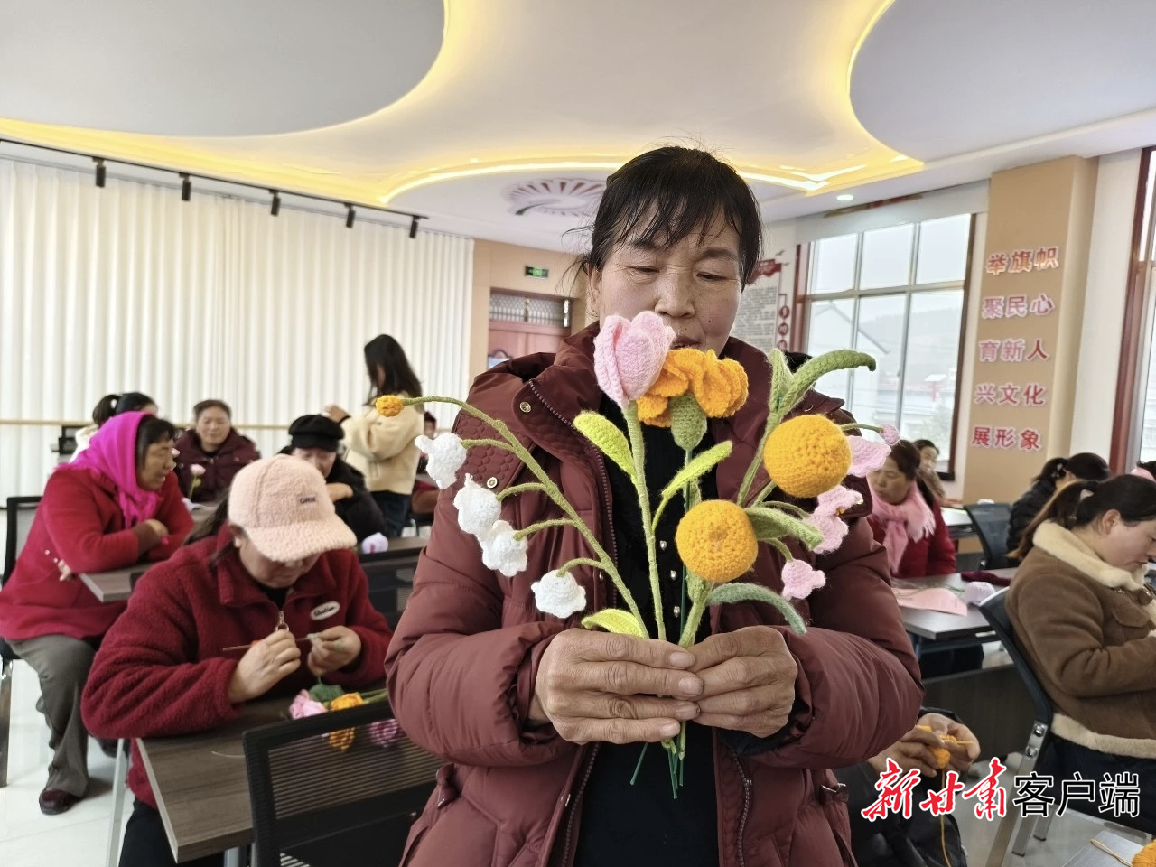 在华亭市河西镇新时代文明实践所,妇女群众学着做钩织。本文图片由受访者本人提供