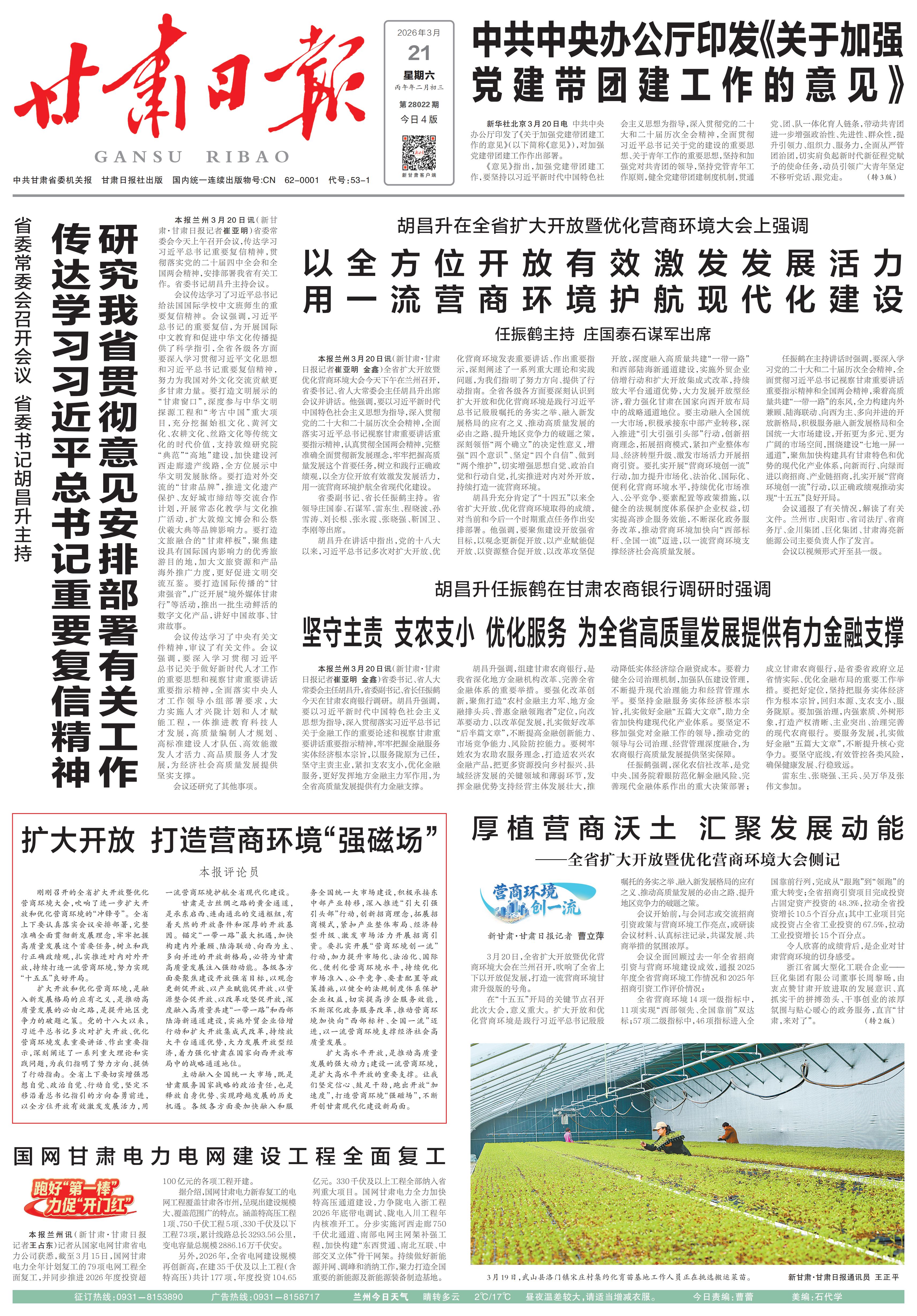 3月20日,全省扩大开放暨优化营商环境大会在兰州召开,吹响了全省上下以开放促发展,打造一流营商环境甘肃升级版的号角。