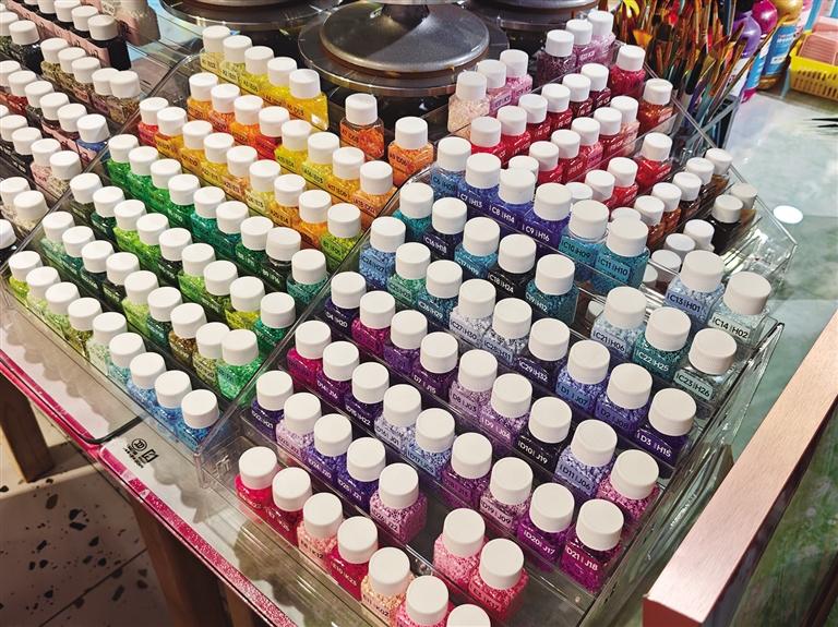 “我们主要做拼豆、银饰DIY和陶艺,也有石膏彩绘、串珠、奶油胶这些项目,基本上当下流行的手工都能体验到。”店内工作人员告诉记者,一站式、多样化的体验,更符合现在消费者的需求,不用跑多家店,就能玩遍多种玩法。
