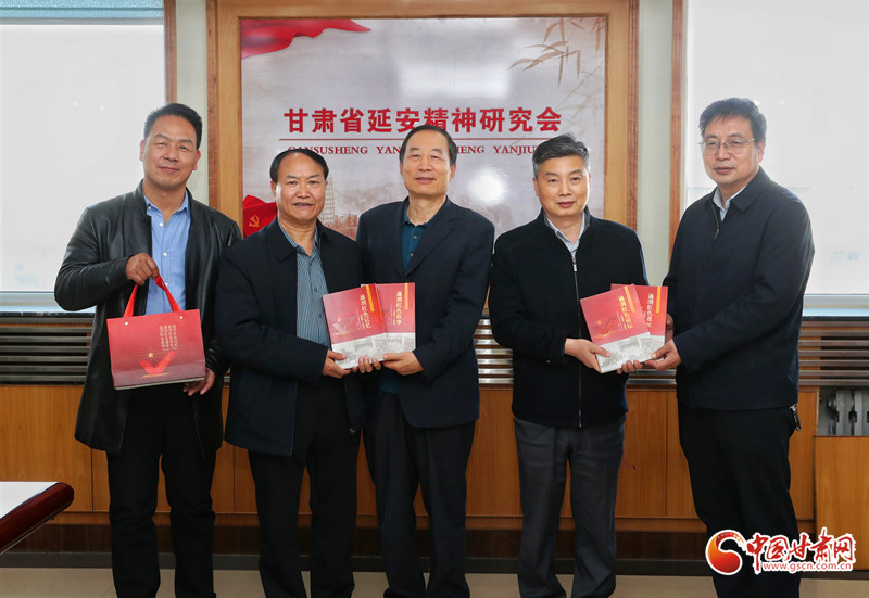 中国甘肃网3月26日讯(西北角·中国甘肃网记者 任磊)3月26日下午,定西市延安精神研究会向甘肃省延安精神研究会赠送《红军长征在通渭系列丛书》。甘肃省延安精神研究会副会长康清,定西市延安精神研究会会长崔振邦,定西市延安精神研究会副会长、中共中央政治局榜罗会议纪念馆原馆长陈鹏鸣等人参加赠书仪式。