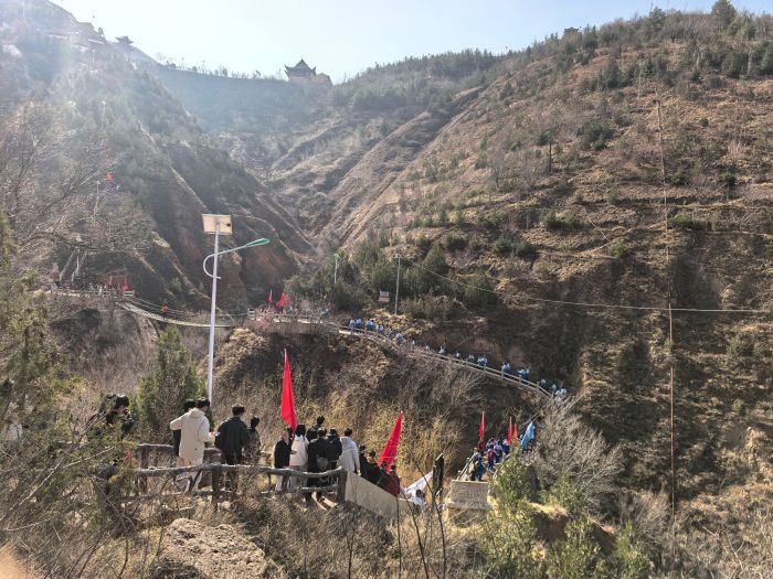 随着启动仪式落幕,一场别开生面的2.6公里“急行军”即刻启程。400余名省内高校学子与会宁本地中学生精神抖擞,从会师旧址出发,迈着矫健的步伐,向红军长征胜利景园进发。