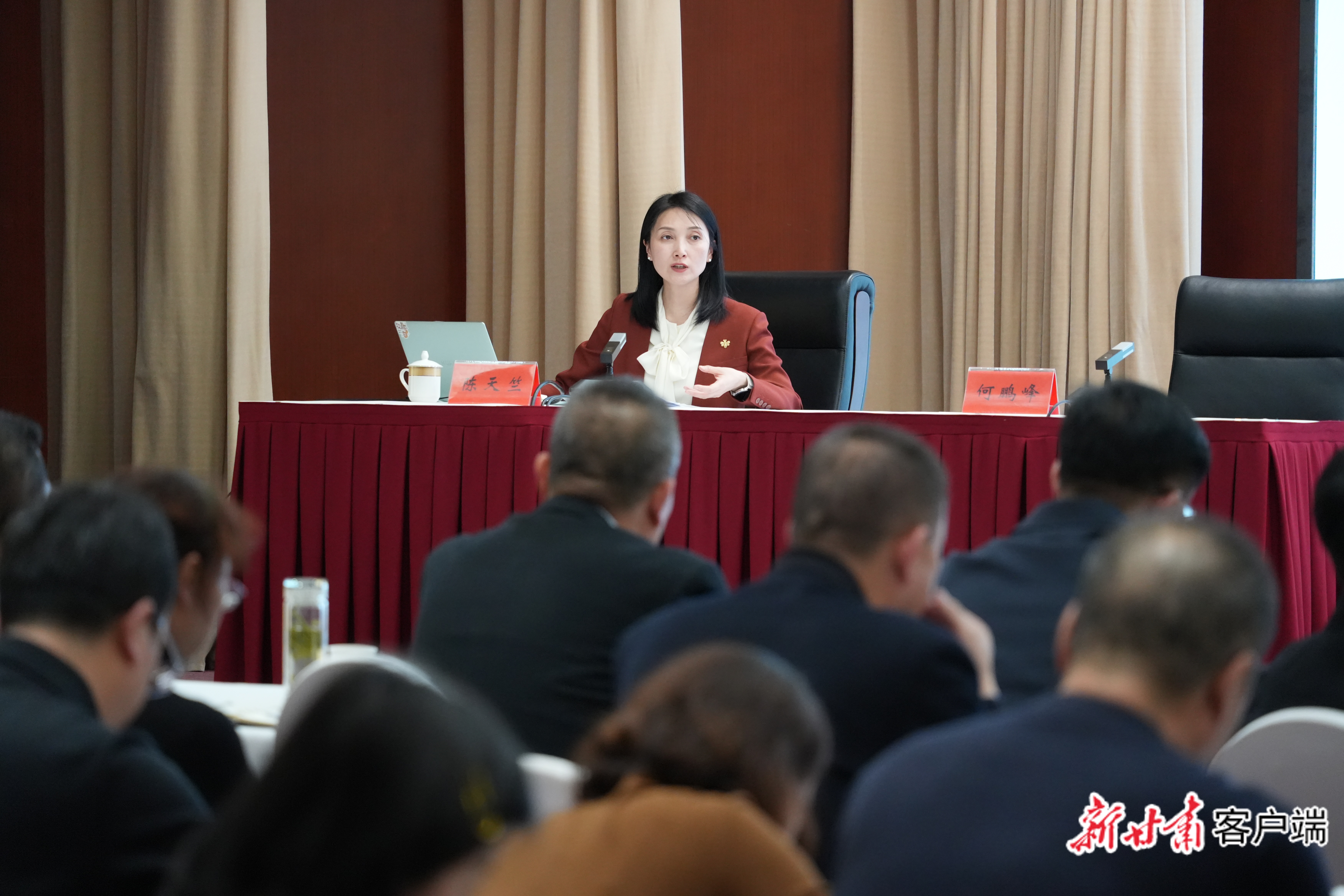 全国人大代表、读者杂志社总编辑陈天竺在平凉宣讲全国两会精神。(图片由平凉市融媒体中心提供)