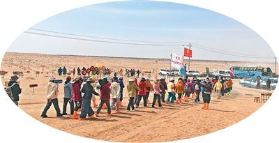 来自全国各地的年轻人相聚甘肃省民勤县,在沙漠中种下梭梭,也种下春天与希望。本报记者银燕摄