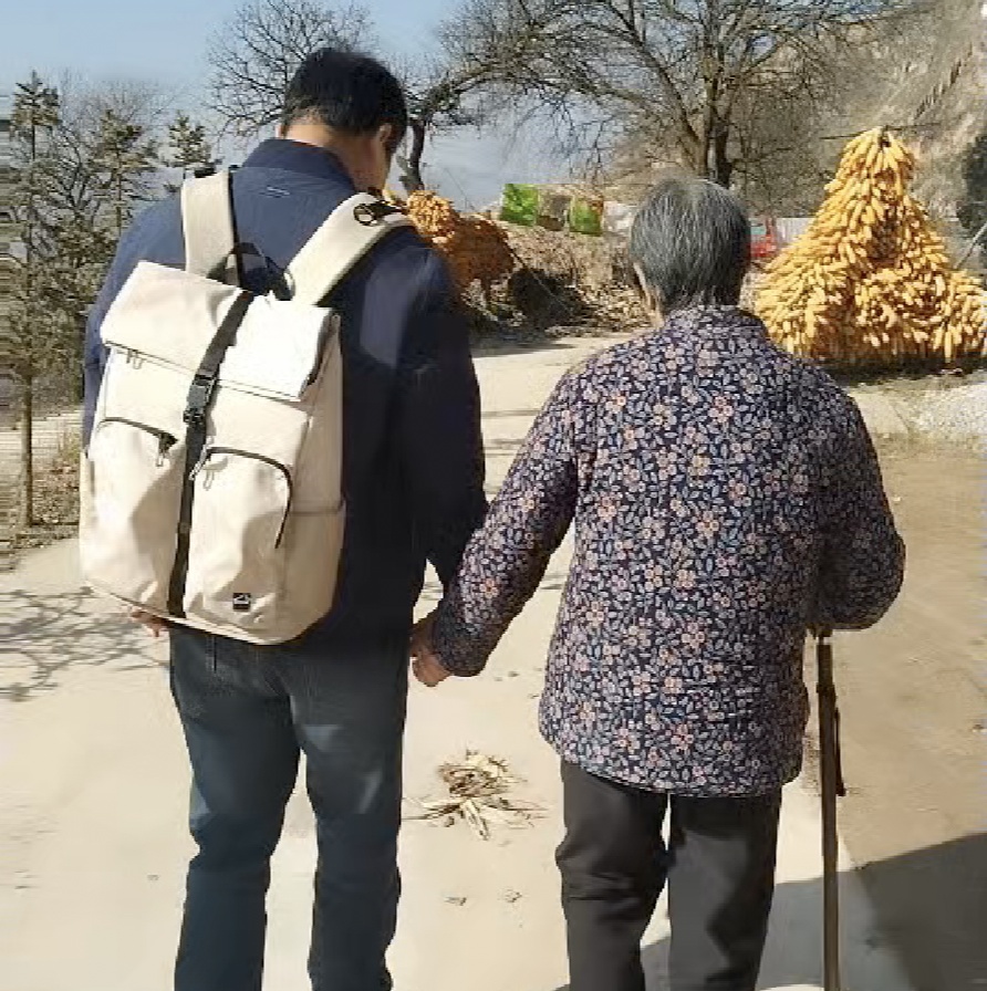 记者了解到,“抱母看戏”的男子叫王??,常年在广东工作,平时很少回家。近期,王??休探亲假回到老家,便带着家人到县城吃火锅。当时县城正在举办一年一度的“桃花会”,还有秦腔大戏,兄弟几人想着老人们多年没到现场看过戏了,便决定带父母去凑凑热闹。