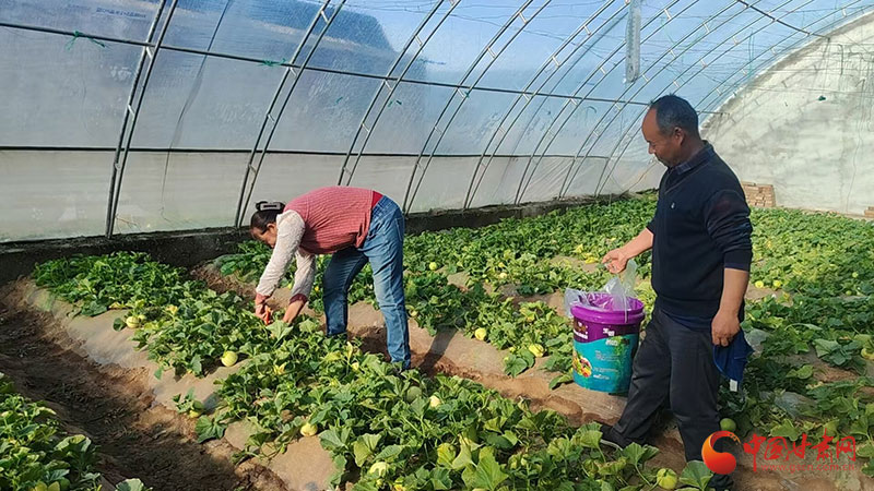 图为玉都镇设施蔬菜园甜瓜采摘