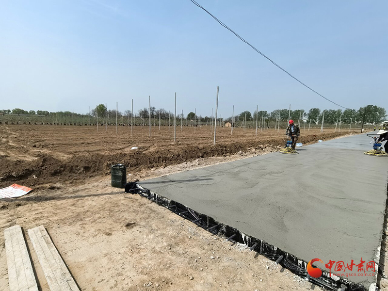 近日,泾川县窑店镇坳心村高标准矮化密植设施示范园区产业道路硬化项目全速推进,施工队伍抢抓工期、分工协作、规范作业,全力平整路面、浇筑混凝土,工程进展有序,一条条崭新的硬化道路在田间地头延伸铺开。