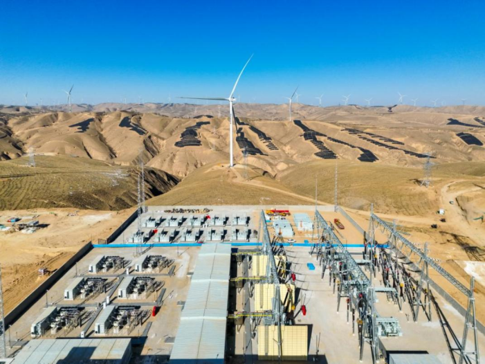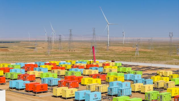 甘肃张掖临泽板桥羊台山300MW1200MWh独立共享储能电站。程刚/摄