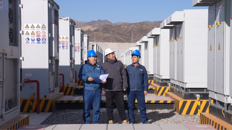 甘肃电力员工在嘉峪关为全省目前建成并网容量最大的电化学储能电站——宁晟500兆瓦1000兆瓦时独立储能电站开展用电上门检查服务。姜欣蓉/摄