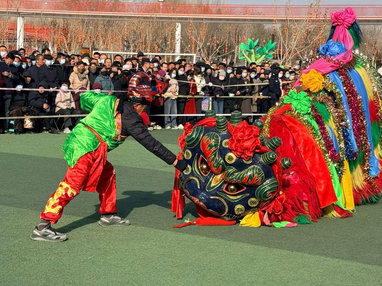 图为在永登县体育场举办的非遗展演(永登硬狮子舞)。