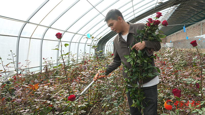 2025年,怀揣着返乡创业梦想的青年杨盘龙承包了八里镇的温室大棚,通过线上线下相结合的方式系统学习玫瑰种植技术,正式开启了特色花卉种植之路,成为当地懂技术、敢闯敢干的新时代新农人。
