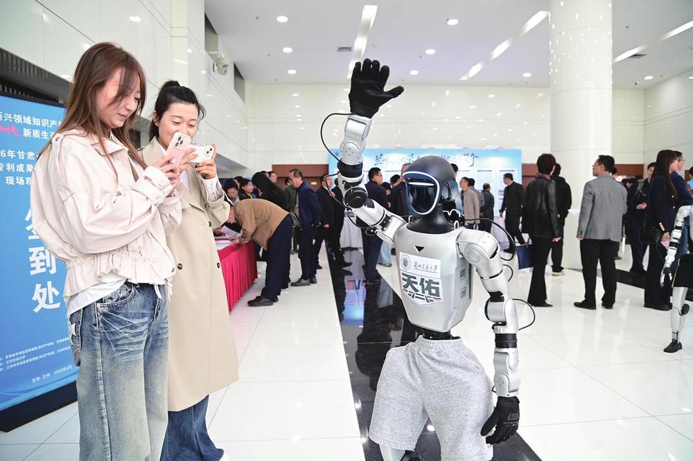 甘肃省高校院所专利成果转化运用现场观摩活动期间,兰州交通大学展示的“天佑”号、“唐臣”号机器人以精彩表现成为全场焦点。 新甘肃·甘肃经济日报记者 瞿娟 摄
